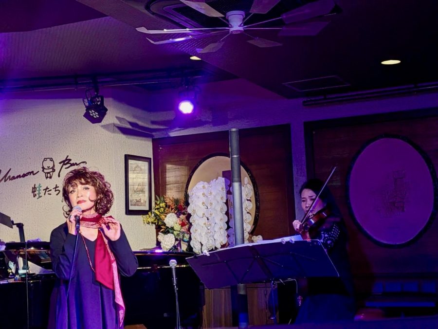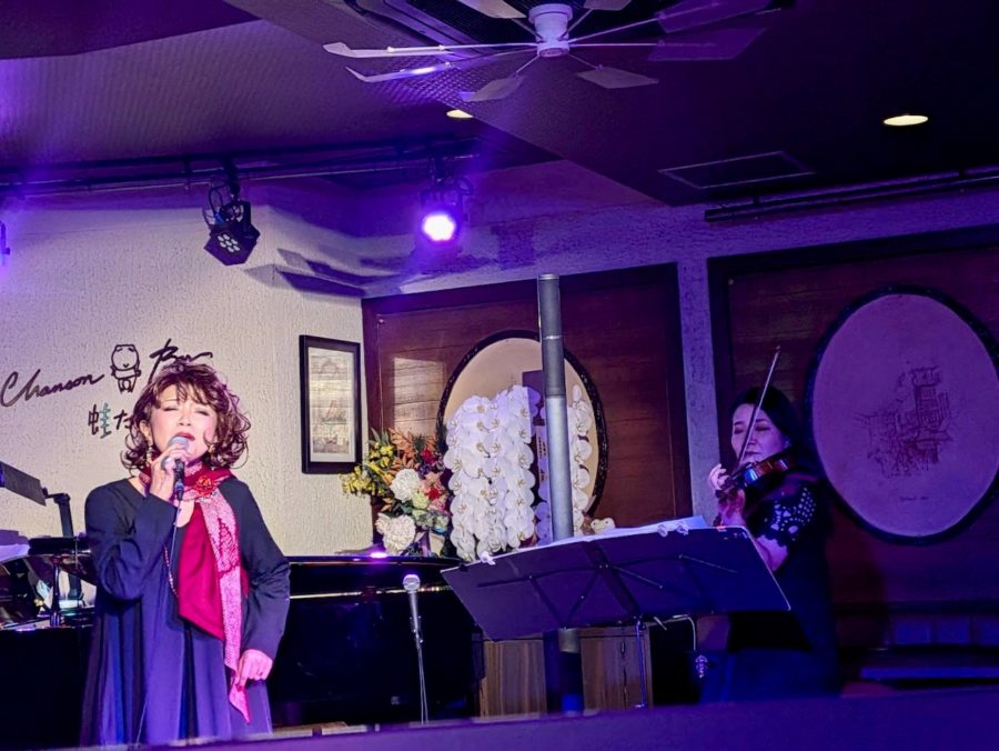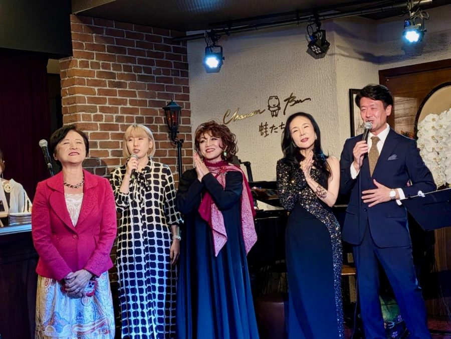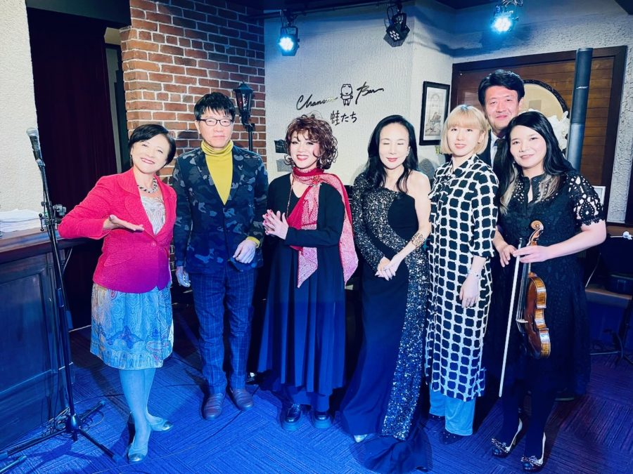 2025/11/26 銀座蛙たち。ピアノ高島正明さん、ヴァイオリン寺島貴恵さん、友納あけみさん、五十嵐志保美さんと。