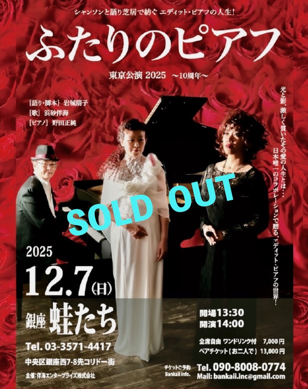 「ふたりのピアフ」10周年スペシャル 東京公演は、満席となりました。有り難う御座います。
