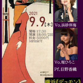 9/9(木)横浜《デュモン》Tel.045-641-2968 Stage 18:00~2回 Close 20:00 ¥5,000/1drink付 …