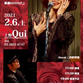 上野《Qui》Tel. 03-3831-0747 台東区上野2-13-2 パークサイドビル4F 浜砂伴海ソロライブ「池の端で逢いましょう」 Pf. …